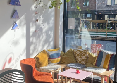 Profitez aussi d’un espace café convivial, disponible pour rencontres et activités créatives.